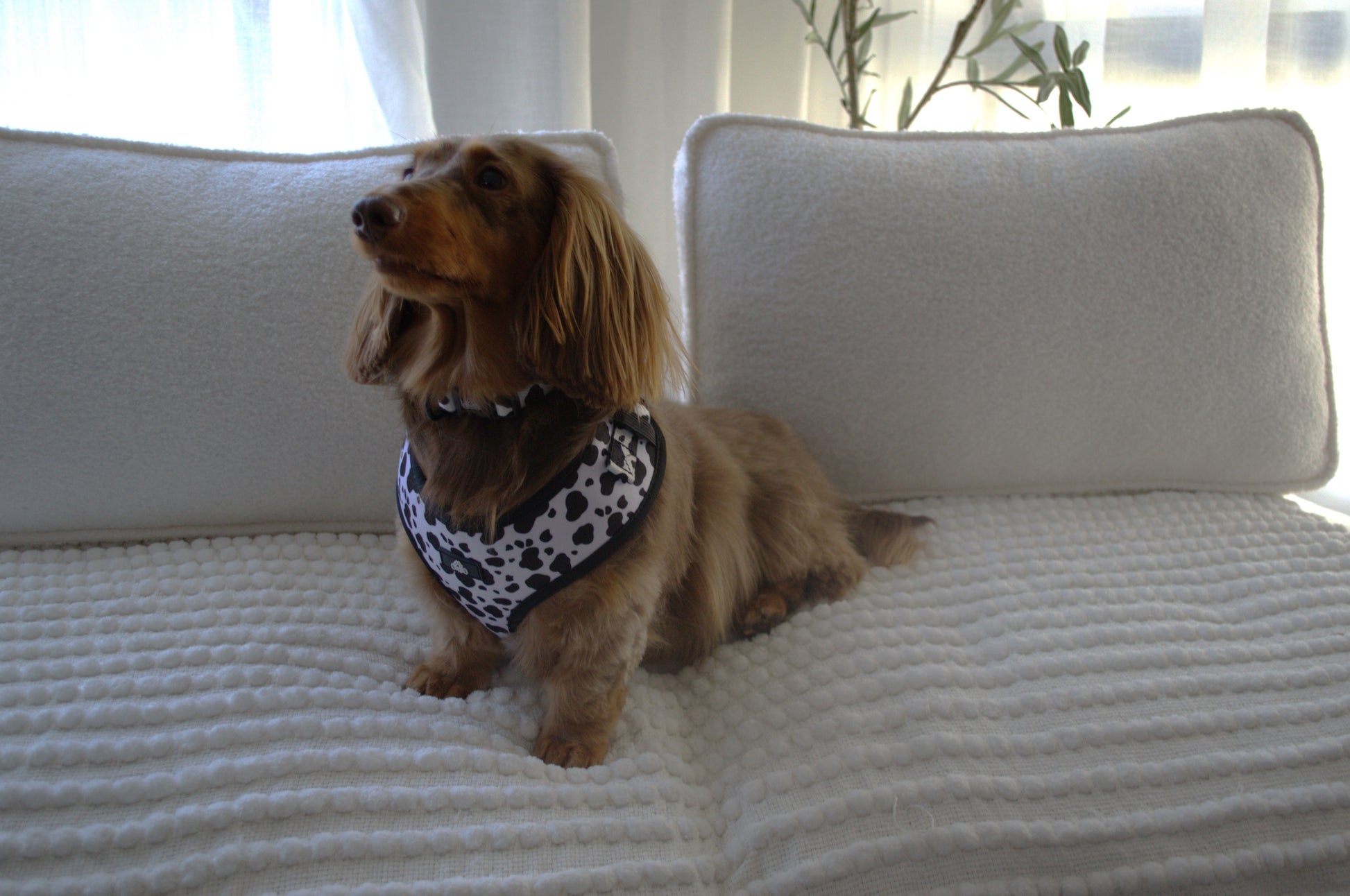 Dress your pup in style with the Complete Cow Print Bundle, designed specifically for smaller breeds like mini dachshunds, toy cavoodles, and small oodles. This set includes a matching harness, lead (2.4m), collar, and poop bag holder, all featuring a bold black-and-white cow print pattern. Each item is durable, adjustable, and crafted for comfort during every adventure. Perfect for adding a touch of charm to your dog’s daily walks!