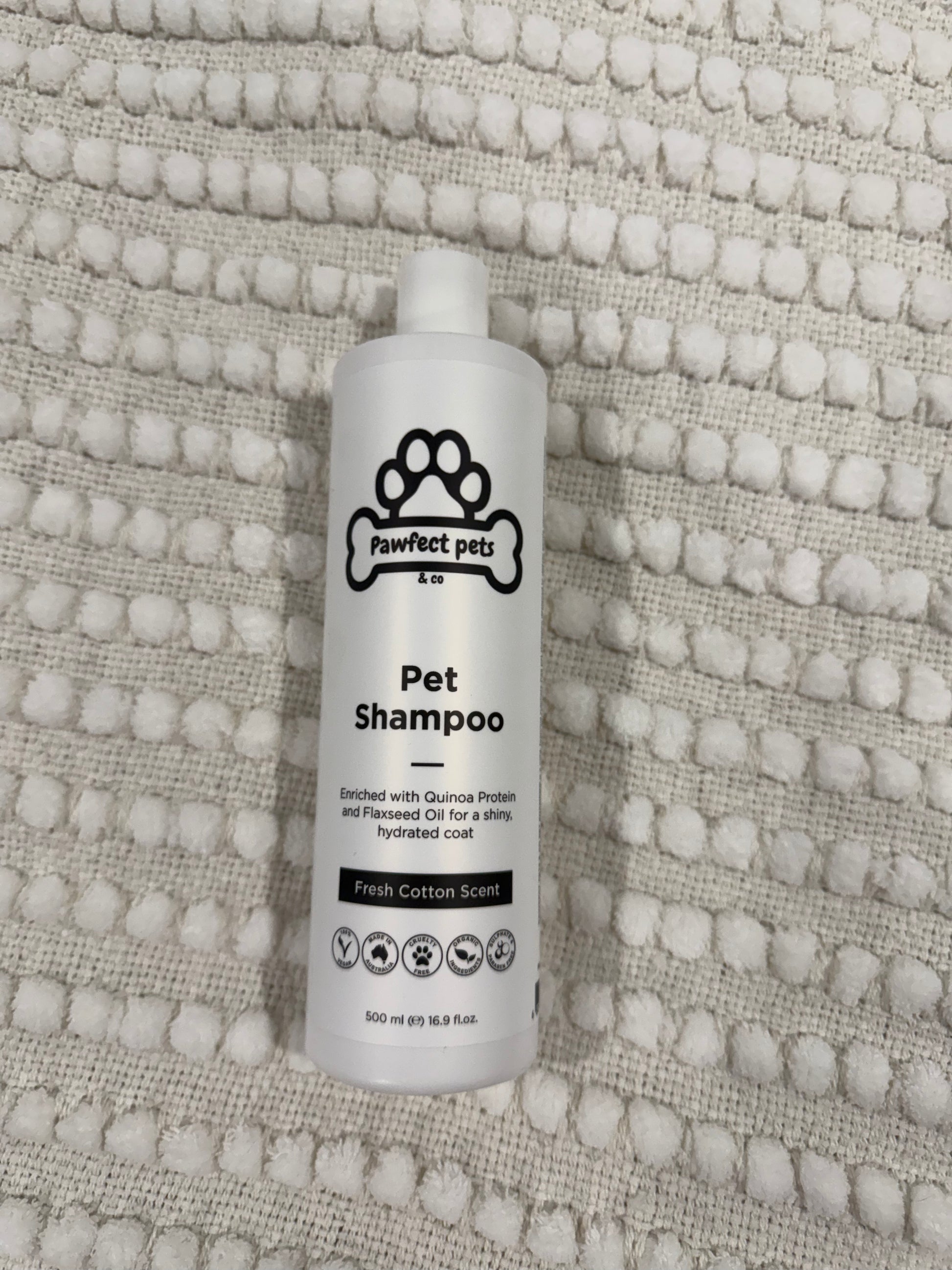 PAWFECT PETS & CO DOG SHAMPOO is a mild, foaming sulfate-free shampoo, has a light scent and is designed to deliver gentle cleansing to the coat and skin without stripping the natural oils. This shampoo is pH balanced for a dog's skin and a blend of oils and quinoa protein keep the skin hydrated.